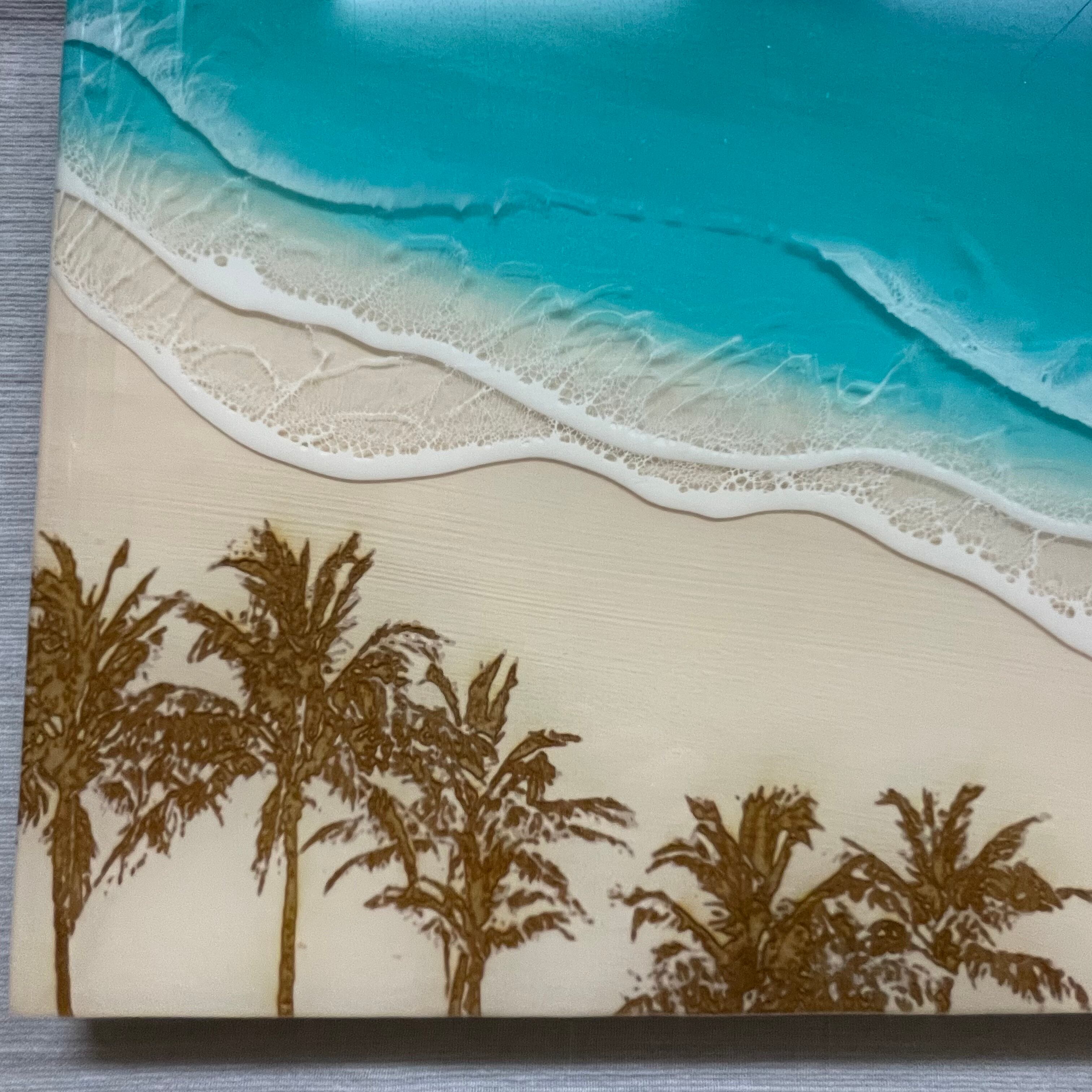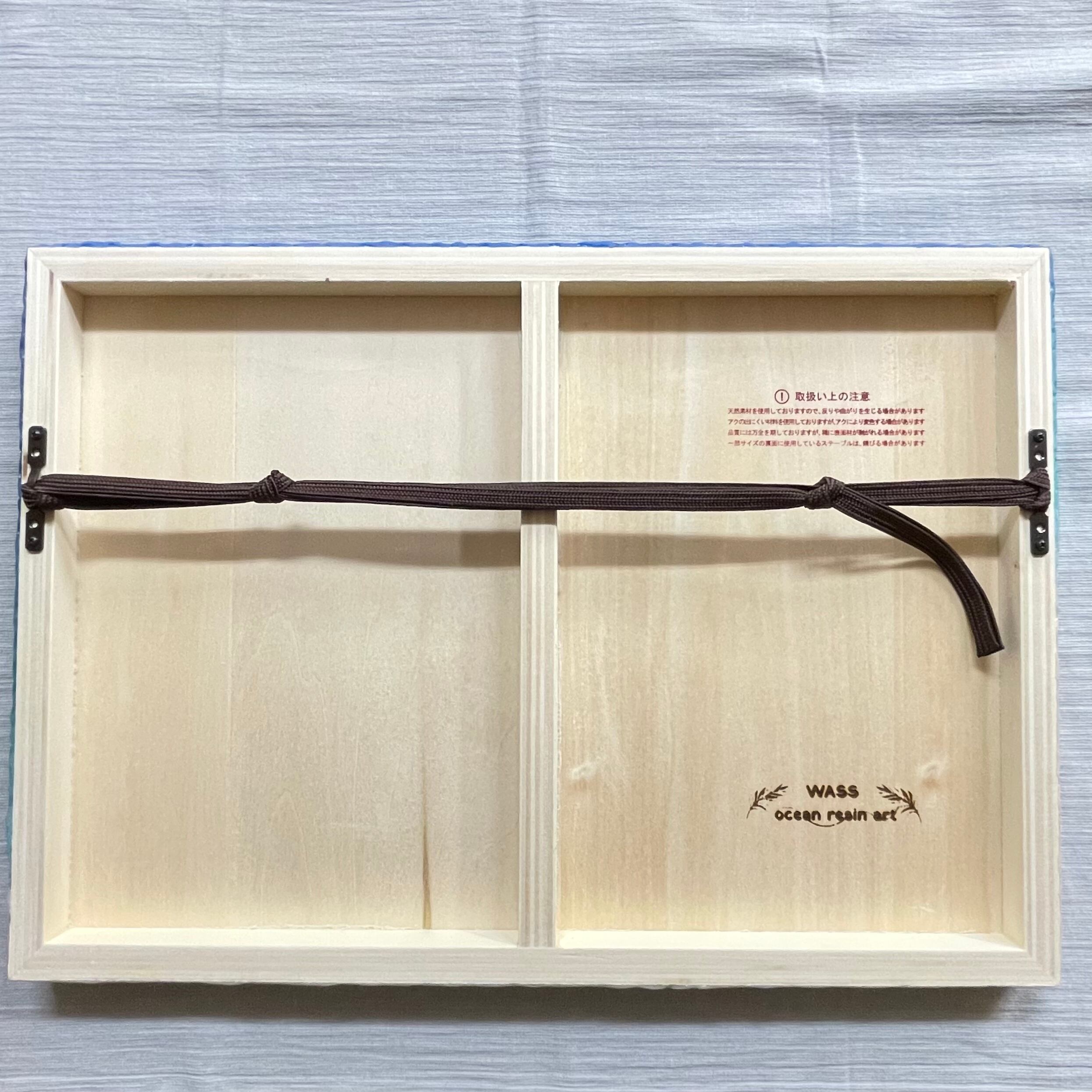 A3サイズの大きなパネルに沖縄の海をレジンアートで表現しました。