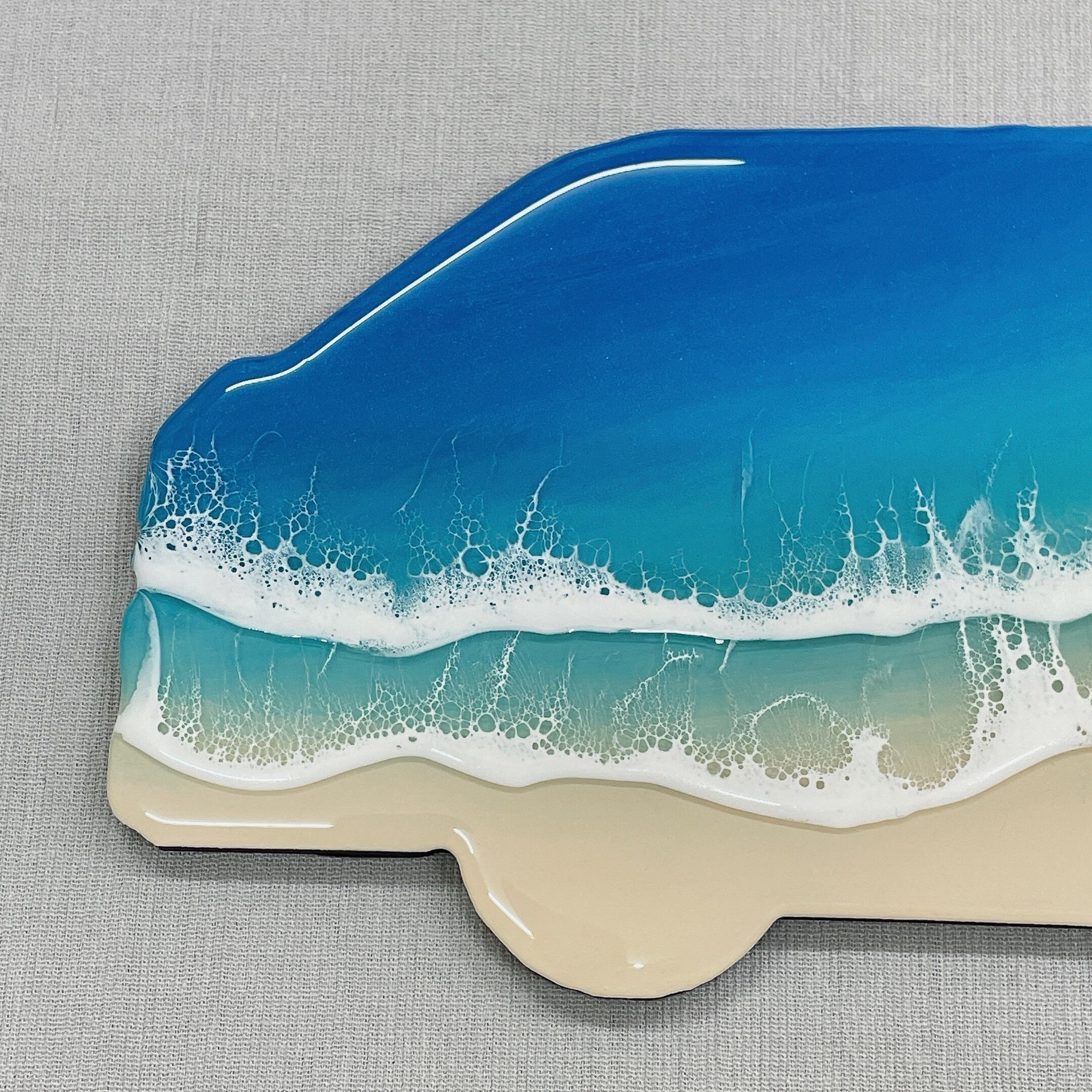 波は2層、砂浜部分にはヤシの木を彫刻してみました。