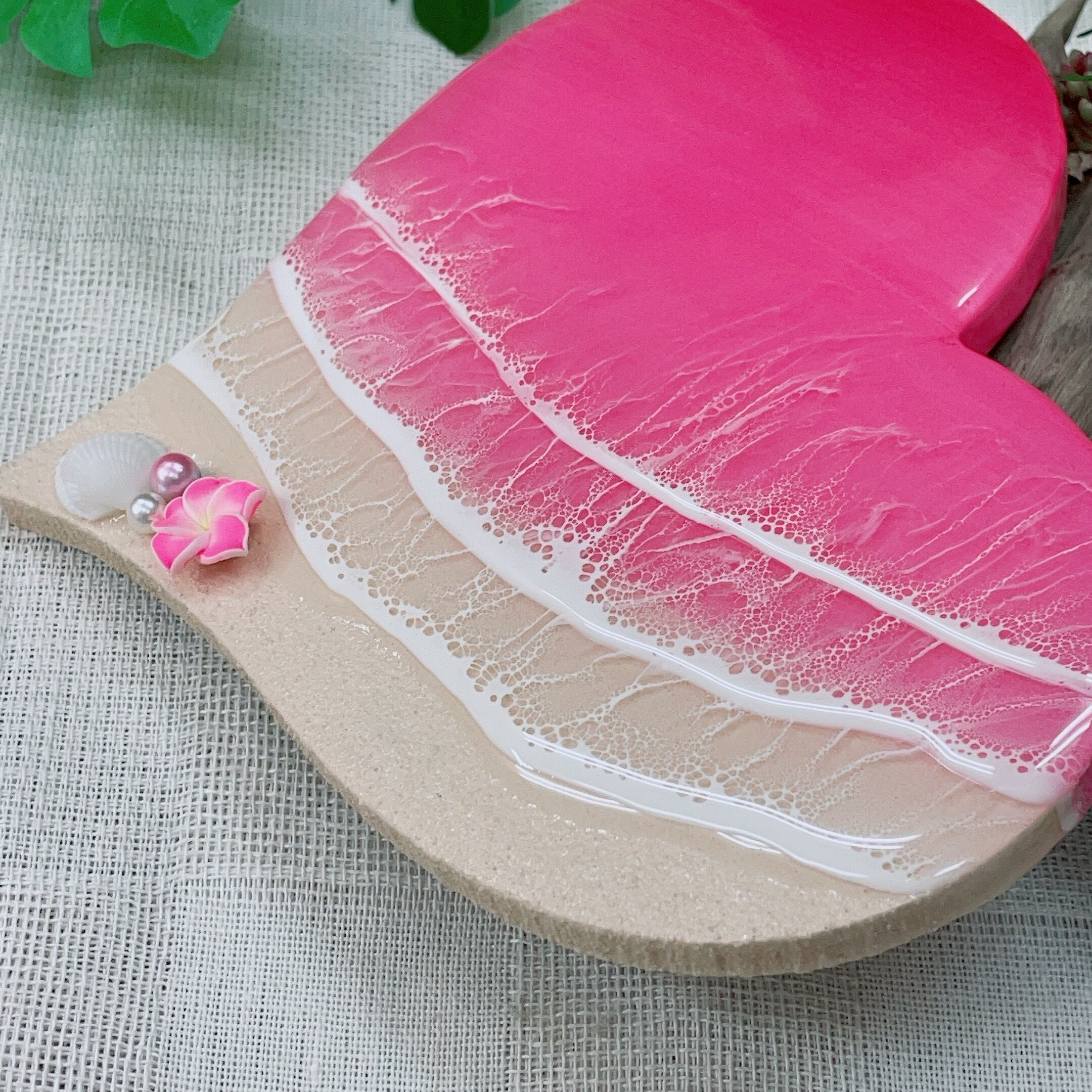 ピンク色の海をレジンアートで表現しました。